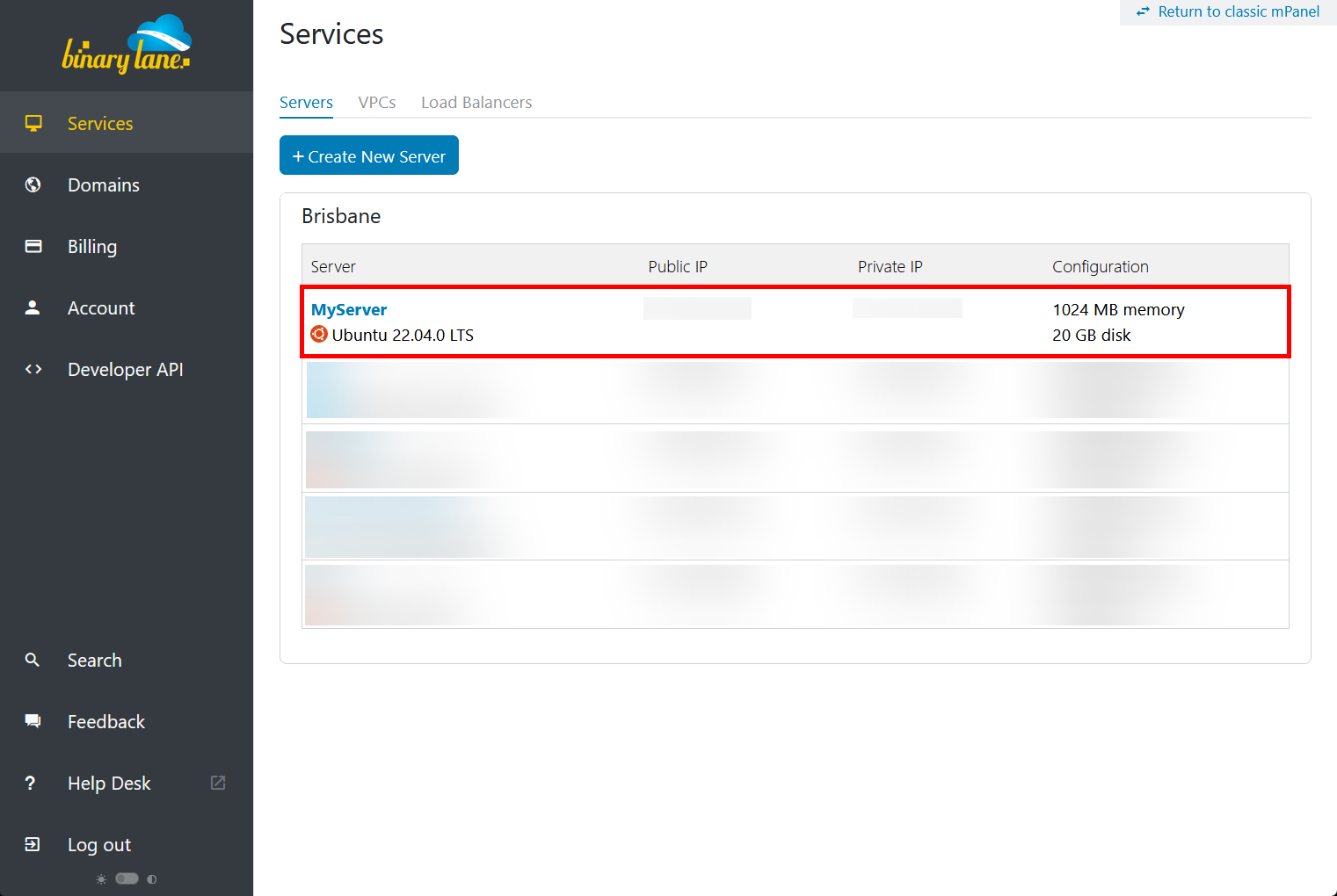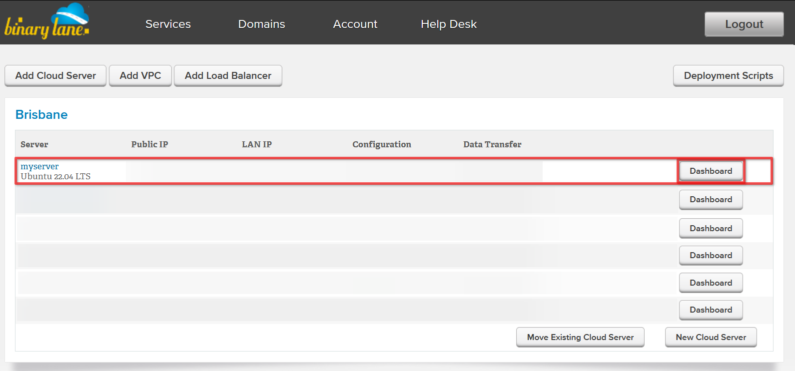 - Log in to your BinaryLane account: https://home.binarylane.com.au/login