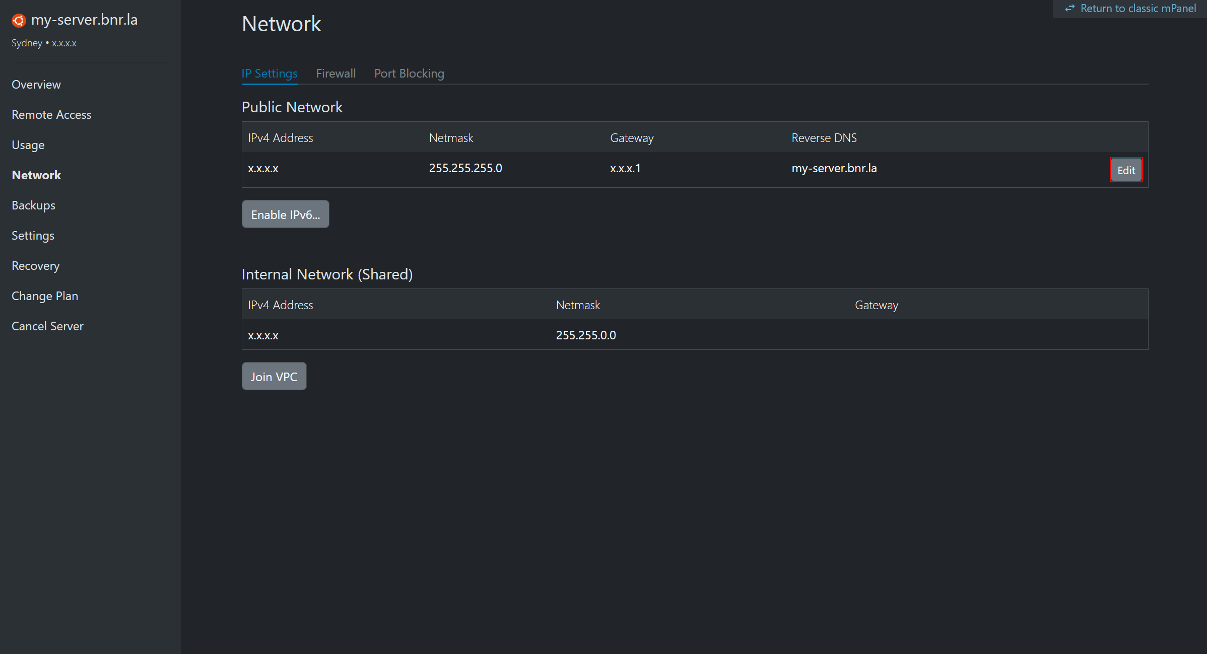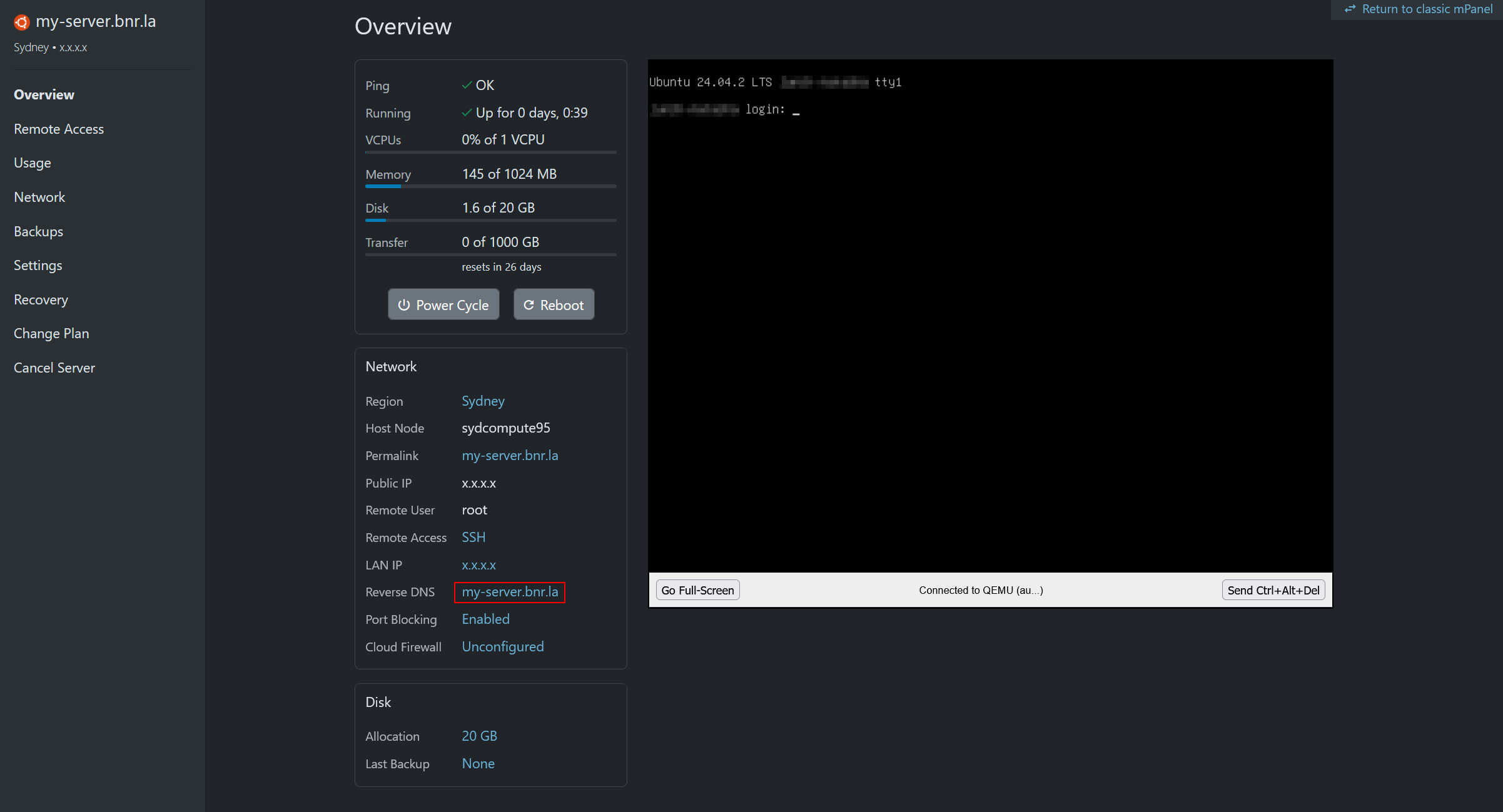 This guide explains how to update your server's PTR (Reverse DNS) record in BinaryLane mPanel.